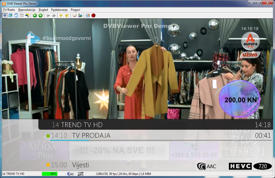 Nažalost, Avermedia se odrekla svih starih tunera i više ih nema na njihovom webu, pa ne mogu probati neki noviji driver ili player (njihov MediaCenter). Ali ... kopkalo me ovo o čemu pišu c-shadow i dakky pa sam išao probati stari tuner na jednoj drugoj makini ali sa DVBviewerom (nezavisni player) i uz nešto brljanja po .ini fileovima za transpondere uspije odskenirati i prikazati !! TrendTV HD, kanal koji prepozna kao 1280x720 u HEVCu. U istoj grupi (762 GHz ili MHz) pronađe ukupno 4, TrendTV i Laudato u SD i HD (720p) rezoluciji !?. Ostale HD muxeve ne nađe ali tomu je možda razlog druga antena i slabija osjetljivost Avermedia tunera. Sad mi je sve skupa još manje jasno nego prije ![]() Pic or didn't happen' ... dodajem snapshote.Zadnje izmijenjeno od: Max Rockatansky. 24.09.2020. u 15:24. Razlog: Dodane slike |