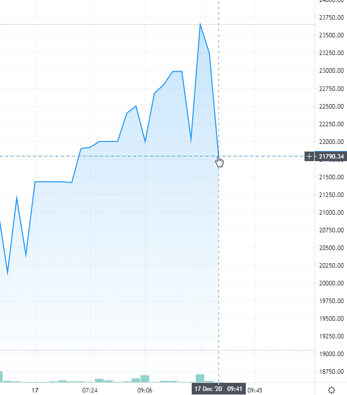 Prije nekog vremena sam predvidio da bi BTC do 31.03.21. mogao preći granicu od 20k $. Danas je prešao. Ako se ovako nastavi, mogle bi se ostvariti prognoze (iako ja u to ne vjerujem) da bi do kraja 2021.g. BTC mogao doći na 50k. Kao što rekoh, ne vjerujem u to, ali...