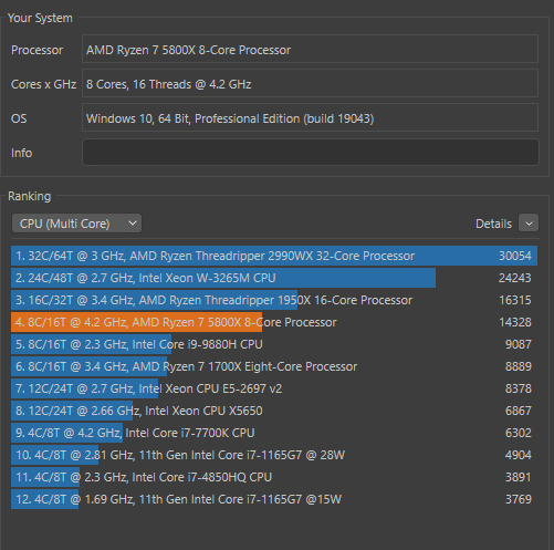 Evo konacno uhvatio vremena i nabrzaka slozio komp. Namjera je, obzirom na slabo hladenje (zalman cnps10x optima 2), proc (5800x) drzati na stock taktovima jer je prioritet stabilnost zbog posla. Tristo do petsto mhz ekstra sto bi mozda dobio 80 puta vecom zajebancijom mi nije bitno. Prvo sam pokusao u biosu PBO postavit na vrijednosti 105/80/90, ali se u idleu znao srusit, dozivio sam par BSOD-ova, proc se nije pregrijavao ali je isao do kakvih 75-6 'C. To je bilo jucer. Danas sam odlucio iskljuciti PBO u biosu i postaviti fiksnu frekvenciju na 4.2 GHz i manual voltage na 1.13V (to sam negdje procitao da je najsigurniji napon po pitanju degradacije procesora jer to zelim izbjeci). Izvrtio sam Cinebench R23 stress test (30 min multi) i najvisa temp je bila 67'C s cim sam zadovoljan. Zatim sam izvrtio jos 10 minutni multi i single i sve je proslo ok. Komp u radu najnormalnije radi i to mi je najbitnije. Molim vas sa malo duzim stazom na 5xxx seriji da mi velite jel to ok frekvencija za taj napon ![]() Sad dok ovo tipkam temp proca je 32'C. Skoci do 50 ako otvorim jos koji program. Evo i koji screenshot Zadnje izmijenjeno od: Cuky. 08.06.2021. u 14:39. |