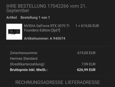 Konačno sam došel na red za 3060, al mi se čini da su digli cijenu opet. 457.48 eura sa shippingom koji je 16 eura. Mislim da je jeftinije prije bilo. Sent from my RMX2001 using Tapatalk |