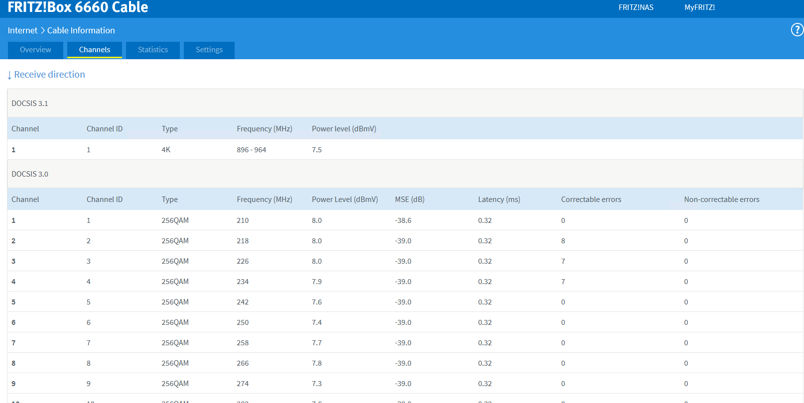 Ima li FritzBox RF Spectrum Analyzer kao što ima Ubee? http://192.168.100.1:8080/rfSpectrumAnalyzer.html http://192.168.0.1:8082/channelcapacity.asp ![]()