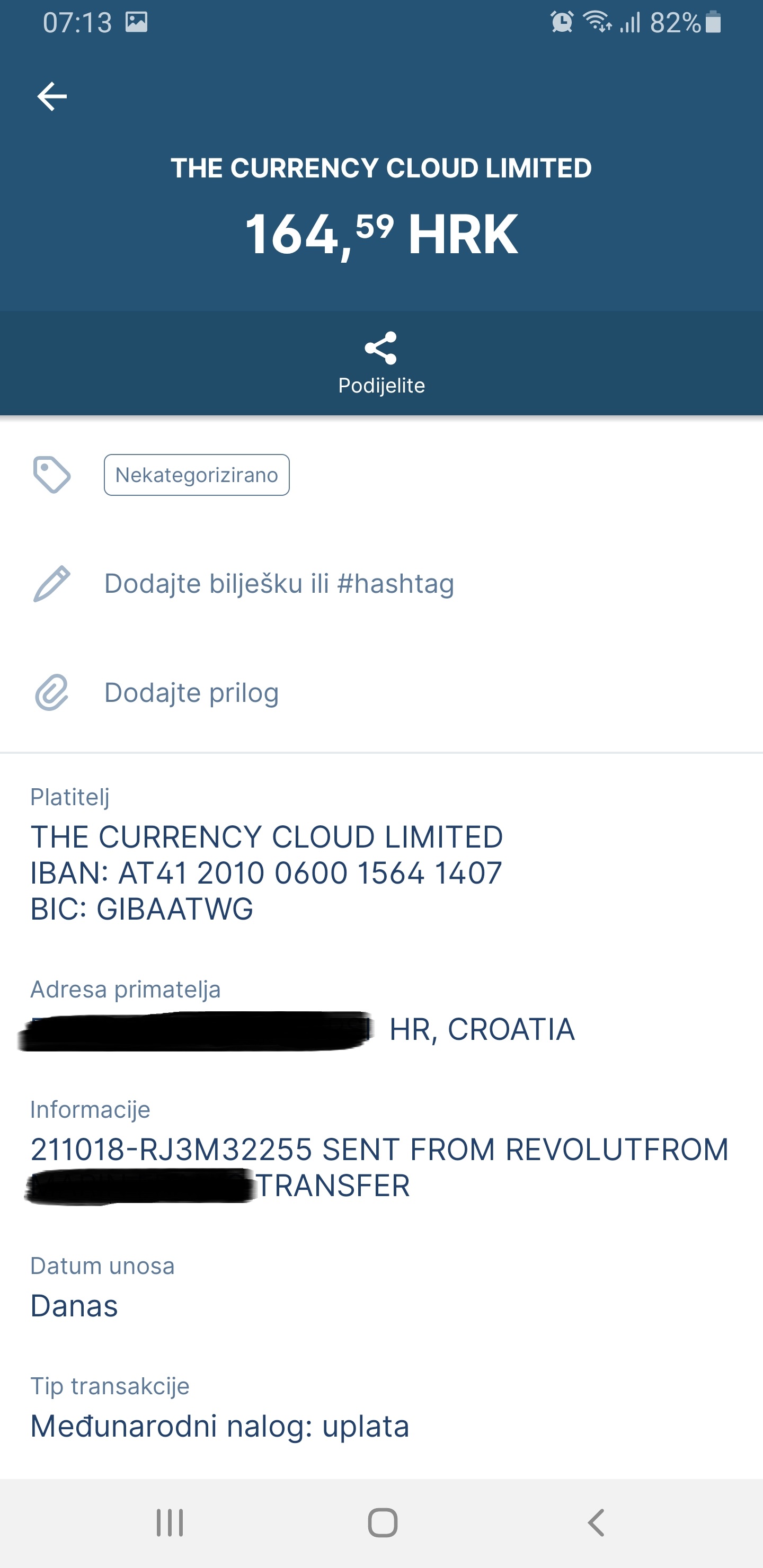 Nekidan sam prebacio nekih 700€ sa Erste na Revolut. Uzelo mi proviziju od nekih 1%. Ono što mi nije jasno je zašto u izvještaju Erste stoji iznos u kn iako sam prebacio sa devizne Vise. U prethodnim slučajevima su mi stajali €. Kod prebacivanja sam označio da hoću prebaciti € iako je Revolut napisao da je račun s kojeg prebacujem u kn (ona standardna njihova poruka).