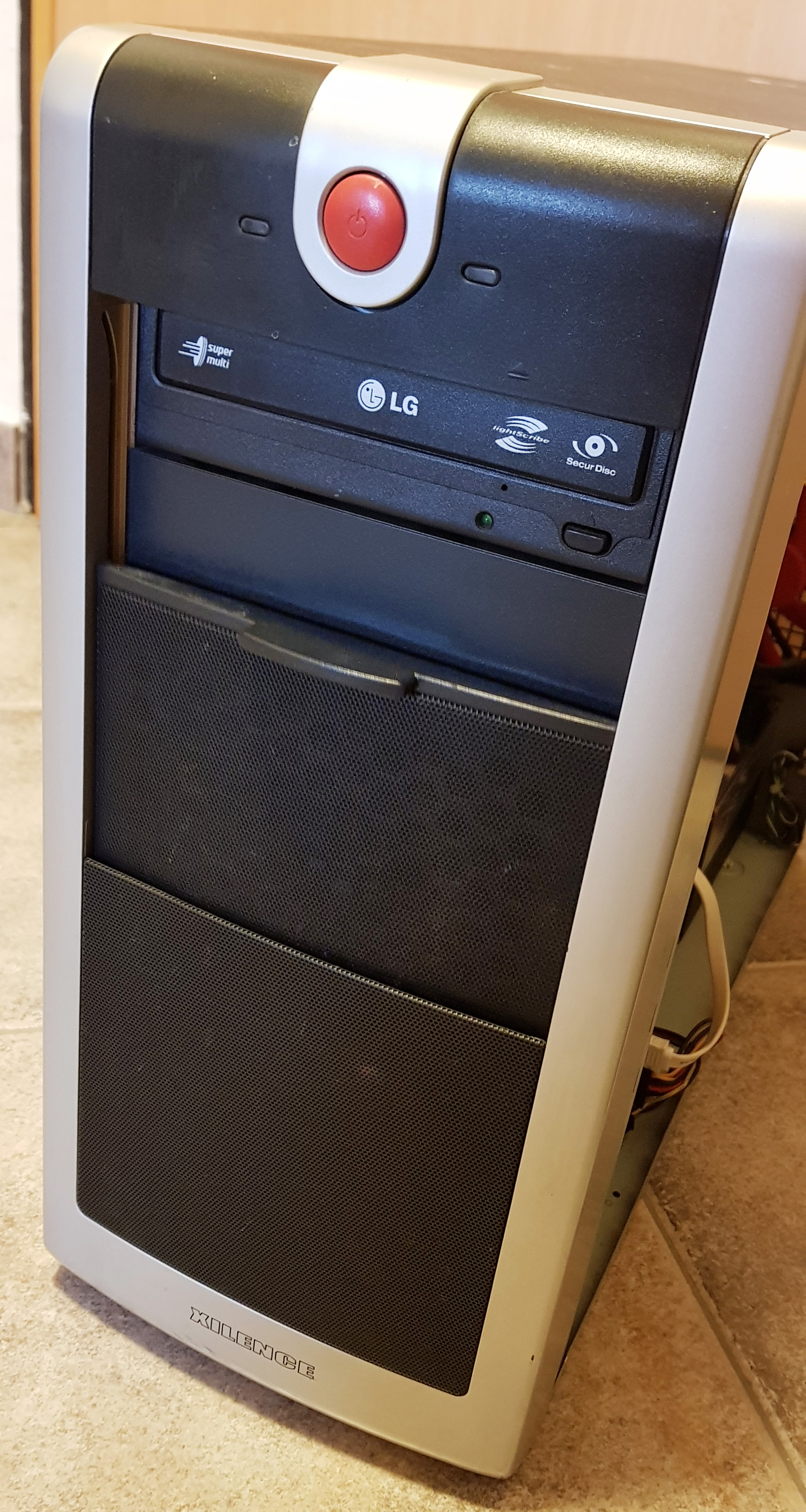 Čudak od casea, Xilence X1. Naopačke layout, okomitidisk bay, prednja maska je na feder i sama se lagano vrača nazad kad se zatvori. Napajanje isto divljak, Levicom VP450B.BL, plexi cover, plave LEDice, potenciometar za ventove. Full early 2000s đir sa case moding forama, a i vide se godine pošto ima 8 molexa i samo 2 SATA konektora za struju.
