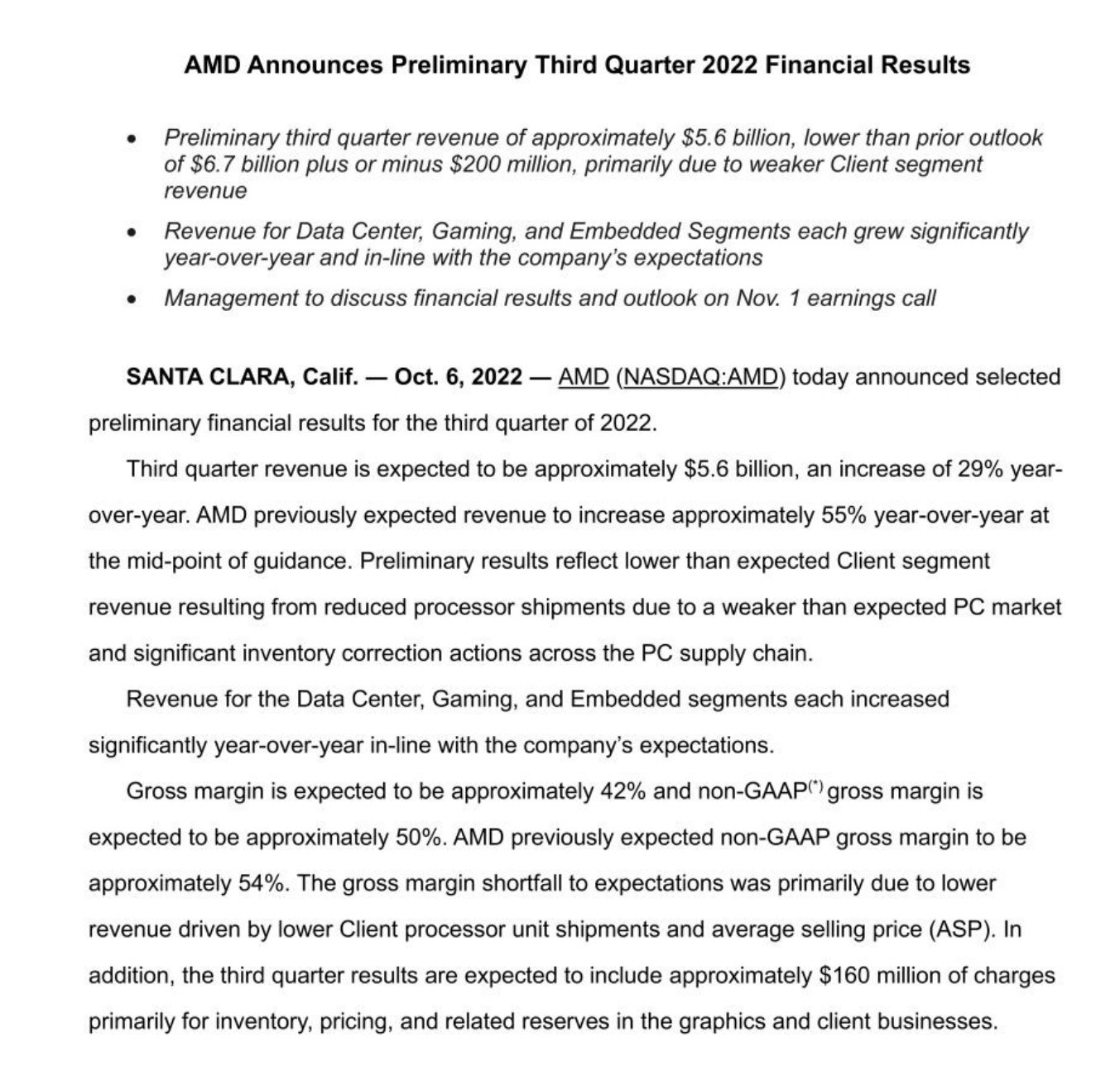 AMD reports third quarter 2022 financial results ![]() Citiraj: