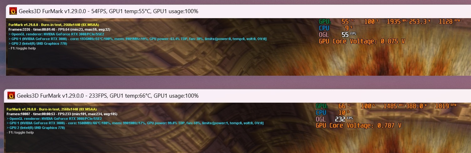 Meni su ventovi bili na na nekih 70% pri temperaturi od 78, ali dok ju nisam undervoltao išli su i do 80% pa se čulo kao da imam mlažnjak pod stolom ![]() Warzone i FH 5 mi ne griju recimo tako grafu, bude nekih 5-6 celzijusa niža temperatura što mi je ok, ali kada sam upalio ovo sinoć šok i nevjerica, najviše iz razloga što sam mislio da sam riješio problem grijavanja undervoltom. |