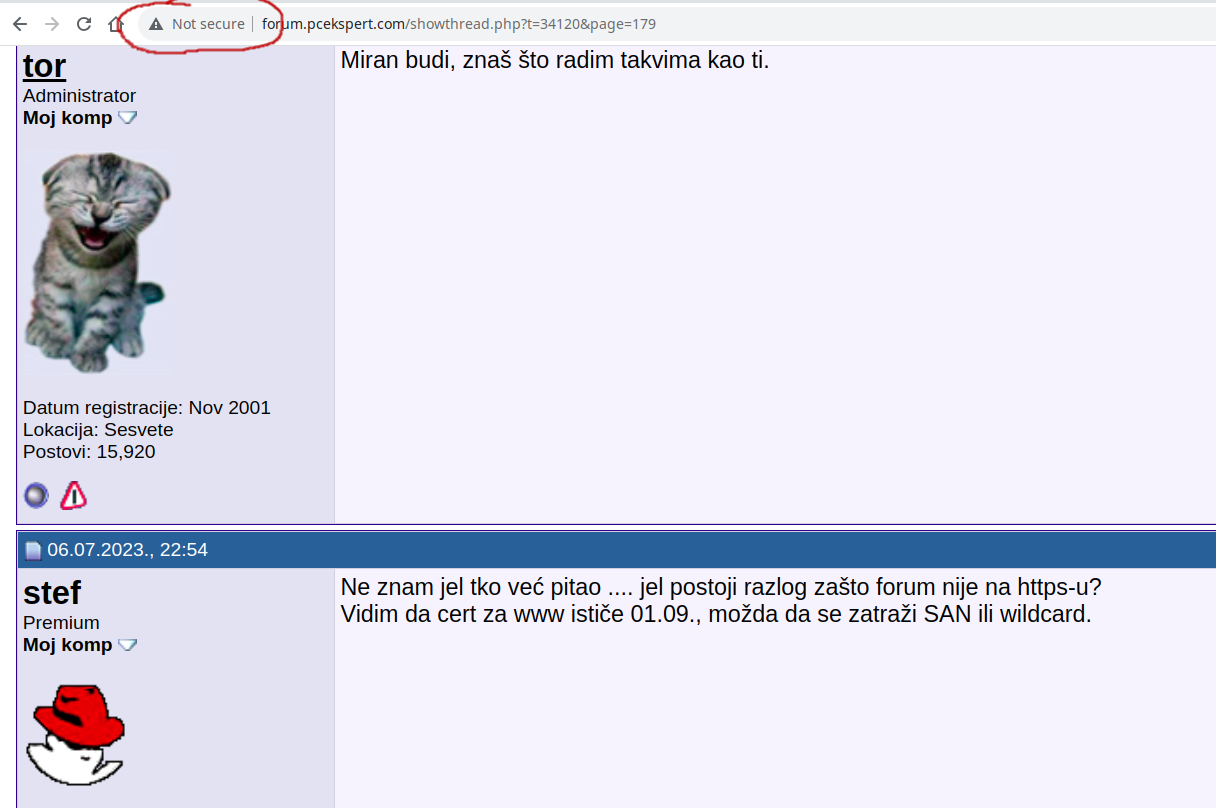Je sve otvara kaj se toga tiče ... a vrtnja ... da malo iritira ... Nije problem odskrolat, ali čisto da napomenem, ako si nekaj probao napraviti, da je ostalo isto, čak i ovo sa zadnjom stranicom ... reko bi da se pogoršalo ![]() EDIT : @tor Evo da se nadopunim, jer ovo je fakat iritantno za čekati da se stranica učita i prebaci za zadnji post ... Naravn da primam i savjet ako nekaj treba obristati ili bilo kaj pa da radi kak treba ... Uglavnom, kad kliknem na zadnji post (plava kućica prije naslova) u donjem lijevom kutu mi stoji : Transfering data from www.google-analytics.com (dok se vrti krug za očitavanje stranice u zaglavlju), te onda prebaci na : engine.x-claimwords.net (i dalje ona točkica u zaglavlju ide lijevo desno) ... Ako ti kaj znači to kaj sam dodao ili ako trebam ja kaj napraviti ... da ne velim da to zna trajati i po minutu dok prebaci na zadnji post, ali stranica se odma prebaci na temu .... Ili samo otvori zadnju stranicu i ne prebaci na zadnji post, to mi se sad dogodilo na : Gaming/Star Wars Jedi: Survivor Zadnje izmijenjeno od: Nbdy32. 03.05.2023. u 11:03. |