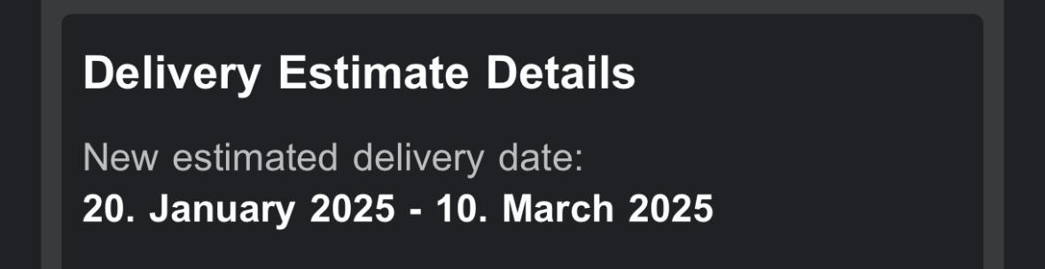 Zadnjih 10ak dana u 4 narudzbe, sve stigle u roku koji je inicijalno bio naveden. Ili malo ranije od navedenog. Ali kod checkouta odbijam kupiti ako stave nepoznat rok ili pretjerano duzi rok. Onda prebacim na mailbox adresu i provjerim "lazu" li s rokovima. Najcesce lazu jer u njemacku dostavljaju za par dana dok za hr toboze nemaju info o dostavi.