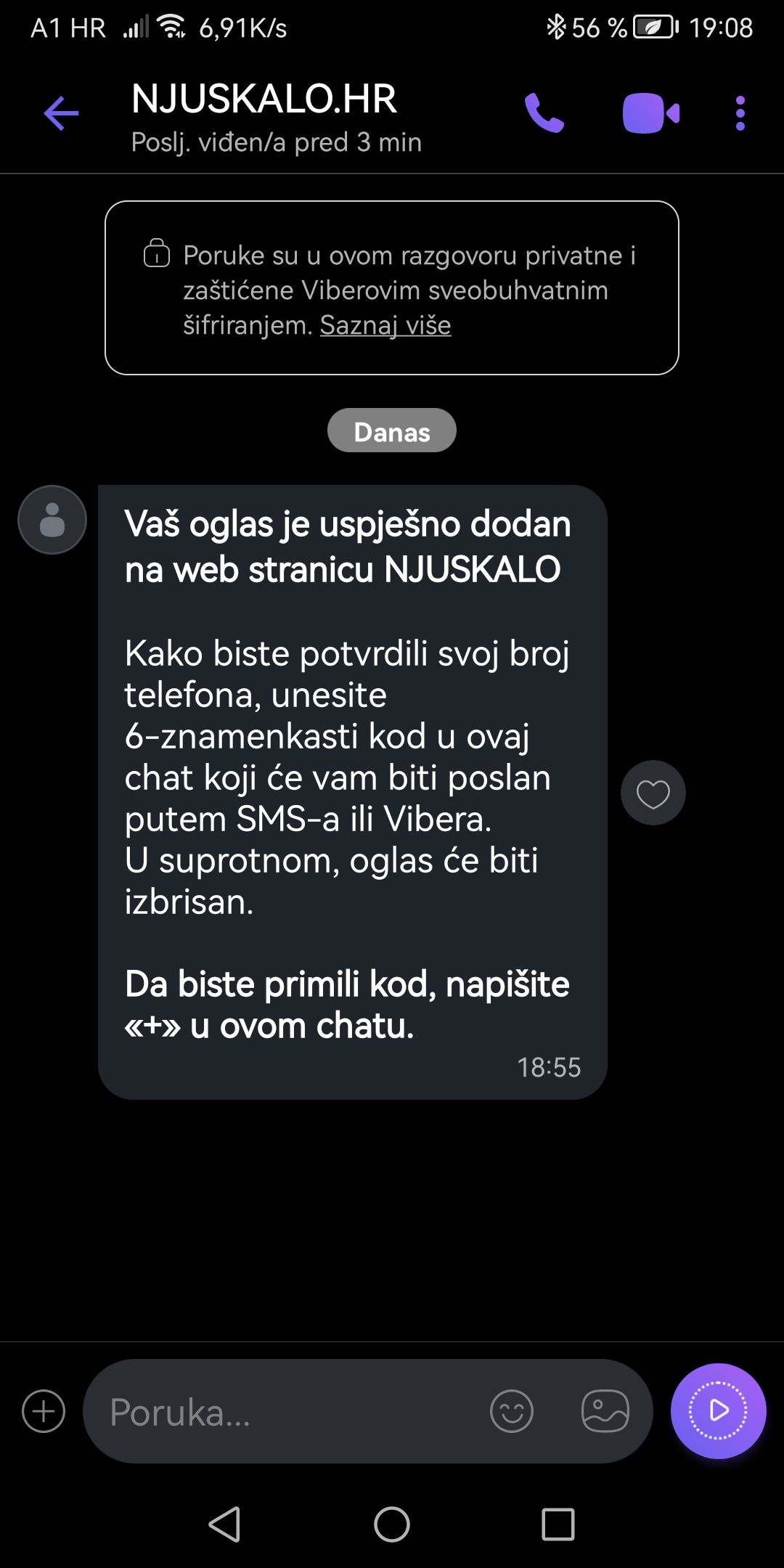 Cujem od ljudi da su neki nedavno pali na scam u obliku DPD info poruke na viber koju dobijes cim postavis novi oglas na njuskalu. Traze verifikaciju broja, dobijes poziv, upisujes neki kod i puf - ostanes bez viber racuna. Pa eto cisto info