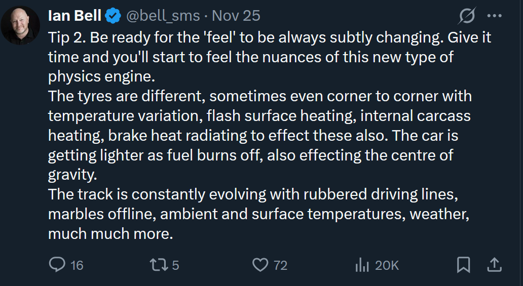 Zao mi je sto je Codemasters, tacnije, EA demolirao SMS tim. Bili su to dobri likovi. I ako je pCARS vukao na simkadu. Fali simulacija sa vise klasa koje primarno nisu GT3. Kao sto PMR obecava. Ali traziti 90$ preorder za novi IP iza kojeg stoji novi studio u vrijeme kada je konkurencija najjaca. I na to bacati pare na reklamu sa Ben Collinsom. Nema logike. Sve sto obecavaju ja vidim kao Automobilista 2 koji je u nekakvoj bizarnoj beti pola decenije. Ovim tempom ce je finalizirati za 30 godina. Sa druge strane Studio 397 pokazao kako se radi sa LMU limitiranim licencama dok je igra jos u early access. Nisu daleko od skidanja iRacinga sa trona i ako zvuci nemoguce. Nadam se da ce biti dominantni i da ce ponuditi nesto novo. Ali iskustvo mi govori suprotno. Will see..