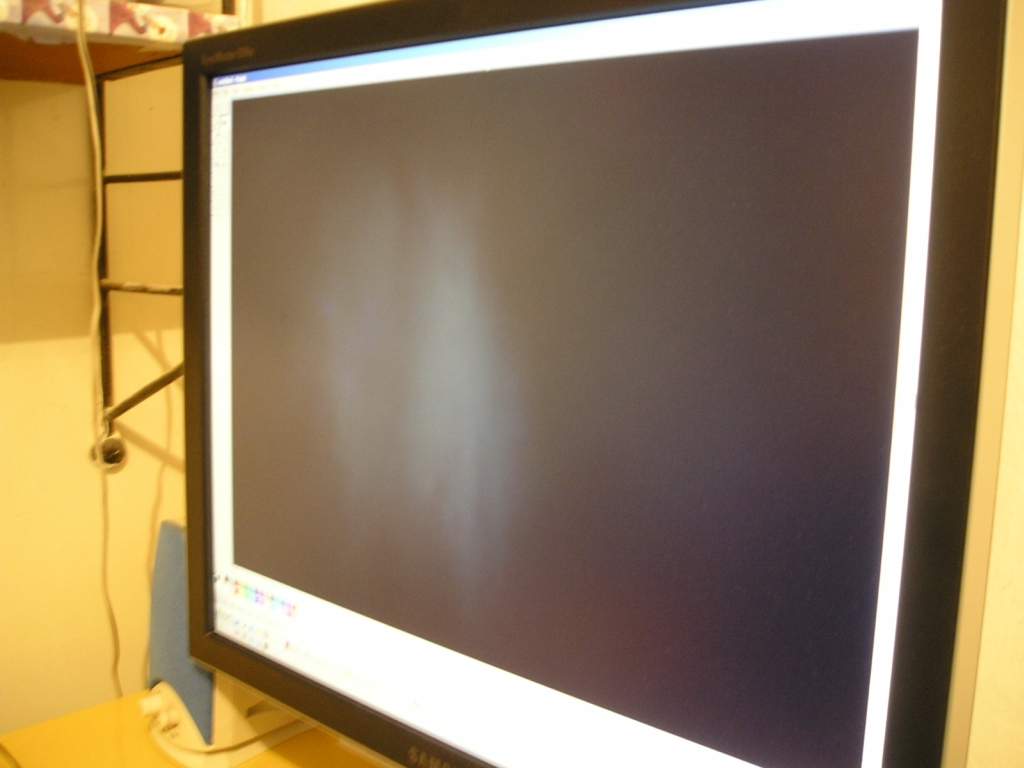 -ako neznaš što je to, onda bar nemoj lupat gluposti -monitor treba hitno reklamirati jer je otišlo pozadinsko osvjetljenje, i ili upravljačka elektronika monitora, a pošto imaš tri godine garanciju, ništa ne brini -to se ne smije vidit, i amen |
