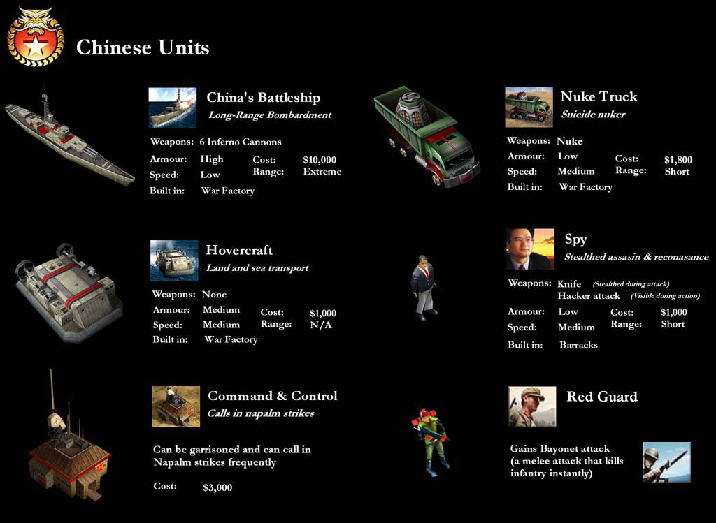 Prva dva su bila evolucija u sadašnji 3 To je tip radio doma u garaži, a izgleda kao da je sam EA ih napravio. Ovjde Vam je za download New Tech Mod 3 http://www.generalsfiles.com/file.info?ID=12827 i preporućam da skinete i slijedeće skinove http://www.generalsfiles.com/file.info?ID=13484 jer onda China izgleda kao prava vojska sa maskirnim jedinicama (i pješaci su maskirni), a uostalom prosurfajte po http://www.cnc-sector.com/ i http://www.cncnz.com/ i obavezno http://www.generalsfiles.com/. Naći ćete pun Q mapa, modova i skinova. Nemojte pretjerat da si ne uništite gušt igranja![]()