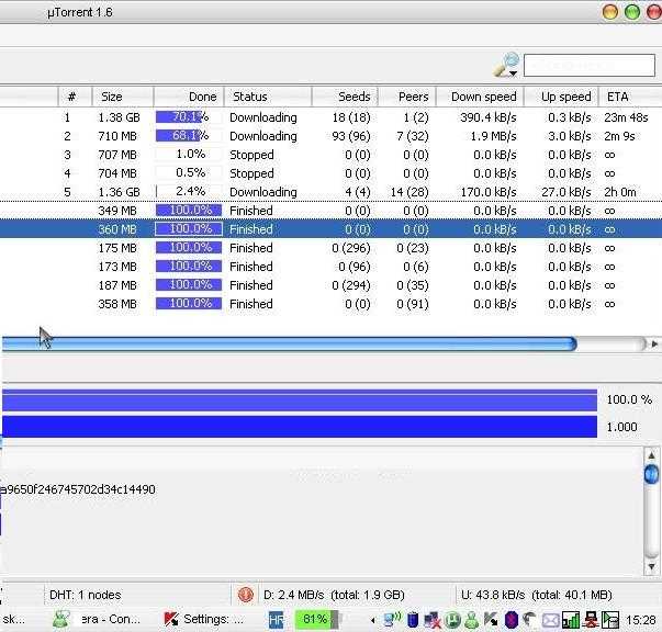 ma postavke su dobre omjer seedera i leechera oko 50% ,upload ogranicen od 10-20kb/s a download ili stavim neograniceno ili ga mijenjam tj. isprobavam kako bi dobija sta bolju brzinu.Ali mislim ako mi je skida kad sam bija na 5gig paketu i skida je isto 100kb/s sad bi na Flat rateu triba malo vise potegnut.Kakva su vasa iskustva tj. kolike su vam prosjecne brzine i koliko vam treba vremena za jedan file od 5gig za skinut |