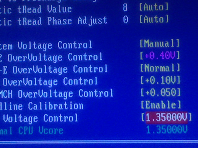 Neda mi se preko windowsa prčkat po sistemu. Ako OC onda u biosu. Dao sam ramu 2.3 Proc još uvijek na 1.35 Zasad 15 minuta stabilno na 490. Ak bude 1sat stabilan idem na 500. Mislim da mi na memoriju ništ netreba puhat. Zalman CNPS9700 je na procu i on lagano puše/vuče zrak od memorije. Vidjet ću kolko bude vruča možda čak stavim jedan vent pred memoriju tek tolko na 5V da ima vjetra EDIT: 490 nije išlo. Evo moje postavke sa 480(možda neko ima istu ploču,proc,ram) Slike su slikane mobom pa malo loša kvaliteta al vidi se sve. Na 480 je stabilan i nimalo vruć(proc 48° a ram s rukom osjetio samo lagano topao) Zadnje izmijenjeno od: Runlevel5. 11.02.2008. u 12:55. |