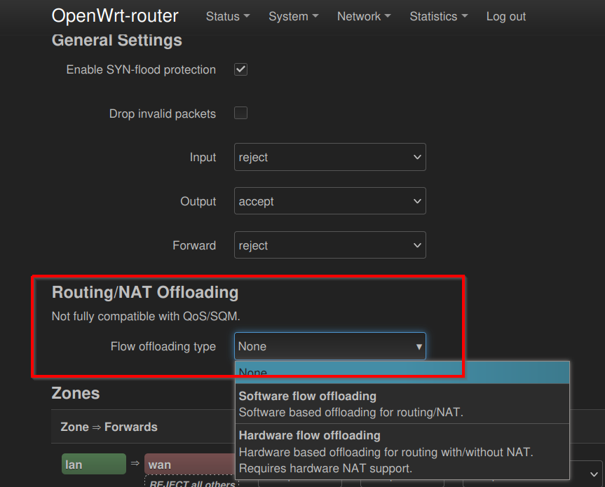 To ovaj Asus TUF 6000 kojega si spominjao? Ako si prčkao po SQM i sl., ugasi to i rebootaj router. Network >> Firewall >> dolje Routing/NAT Offloading >> Flow offloading type, stavi na hardware. Probaj onda. Ako ni tada ne pomogne, trebalo bi se spojiti preko ssh na router, instalirati htop ili atop i vidjeti da li prekomjerno troši CPU pa ga to koči. S hw akcel. bi trebao raditi na 2Gbps bez problema. Bez toga, teško, a sa nekim bijesnim SQM nikako ![]() Javi tu ako Asus i dalje zafrkava. |