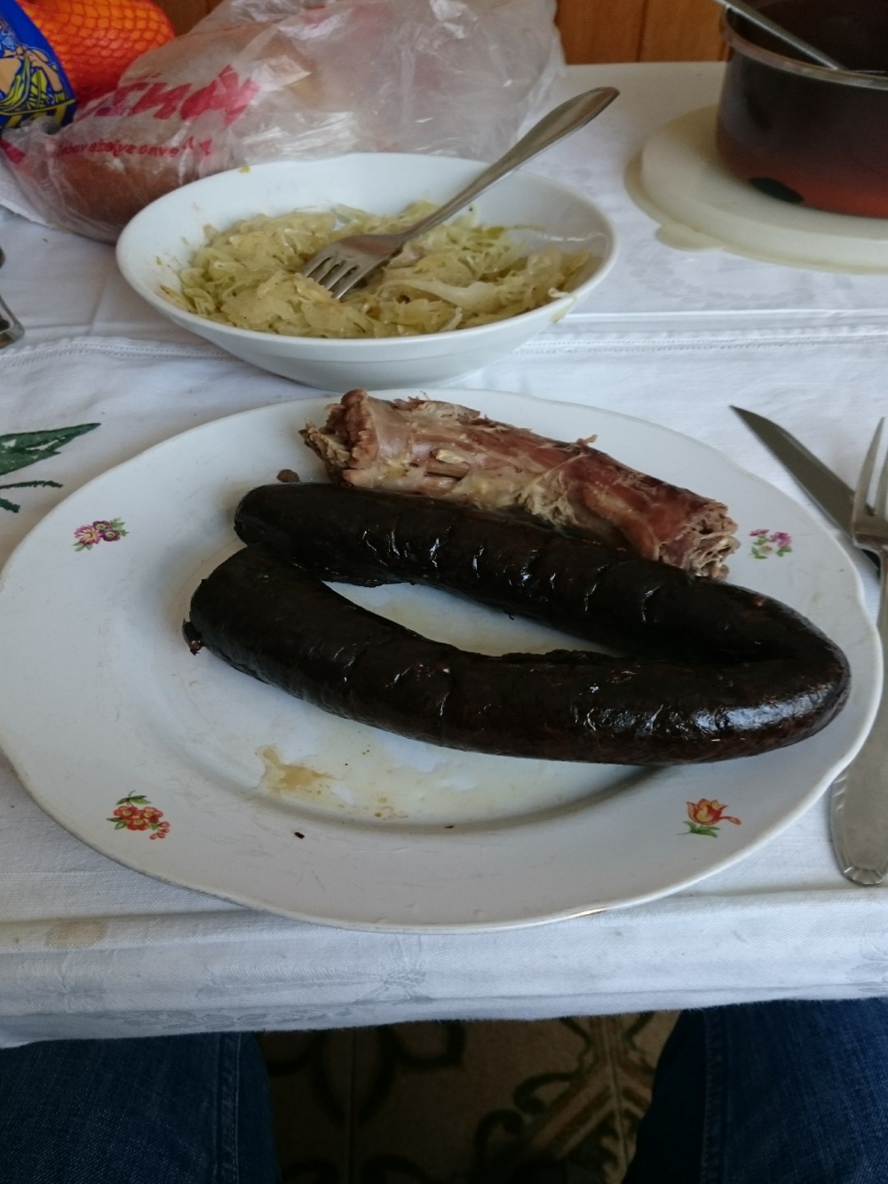 Ubio se jučer. Krvavice, pečeni krumpir i dinstano zapečeno kiselo zelje ![]() Sve domaće. Danas laganini - sendviči s dimljenim lososom, a žena upravo peče lisnato sa sirom i povrćem ![]()