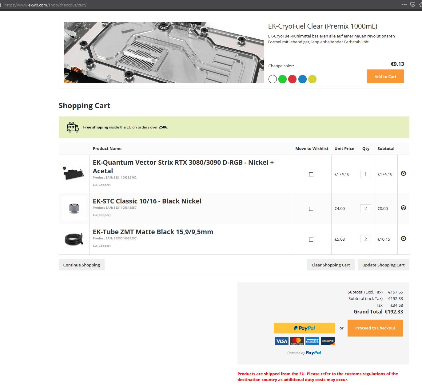 I piše da se šalje iz Taiwana ako se naručuje sa par europskih evga stranica, što znači da moraš dodat pdv + shipping + carinu na sveukupnu cijenu sa pdvom i shippingom