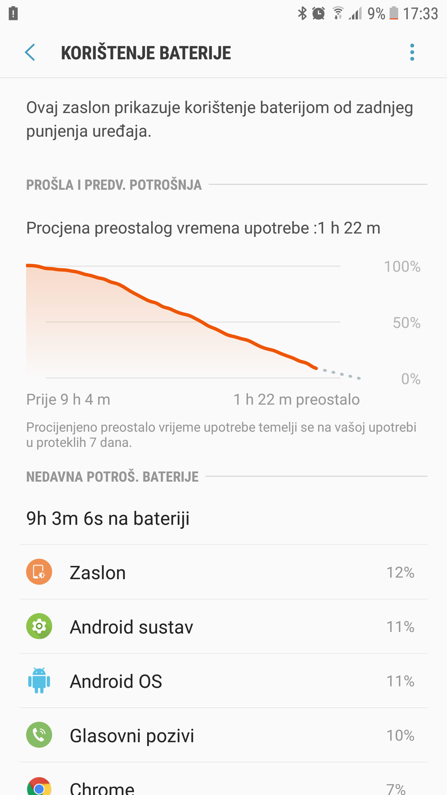 Nezz kak vama pada baterija na S7/Edge, mislim da tu najviše igra svjetlina zaslona. Meni je najčešće na 25% i SoT je 4.5-6h ovisi kako koji dan, a ne igram igrice, nego klasični surf, fb, dopisivanje i normalno korištenje. Nije mi security patch october, nego august iako je update došao početkom 10. mj, makar bi trebao doć i sad jer je na tele2 došao, a na tmobile i ostale nije kolko vidim na sammobile. I naravno FHD je reza. |