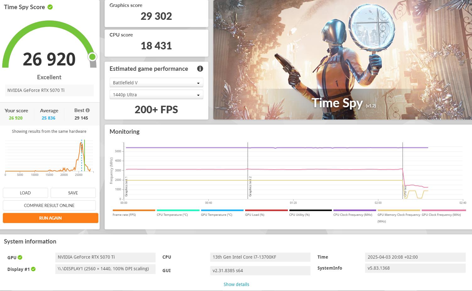 OC sa MSI afterburnerom (curve) i +200 mema, zotac trinity. Koliko vidim to je prosječan score za taj kombo.