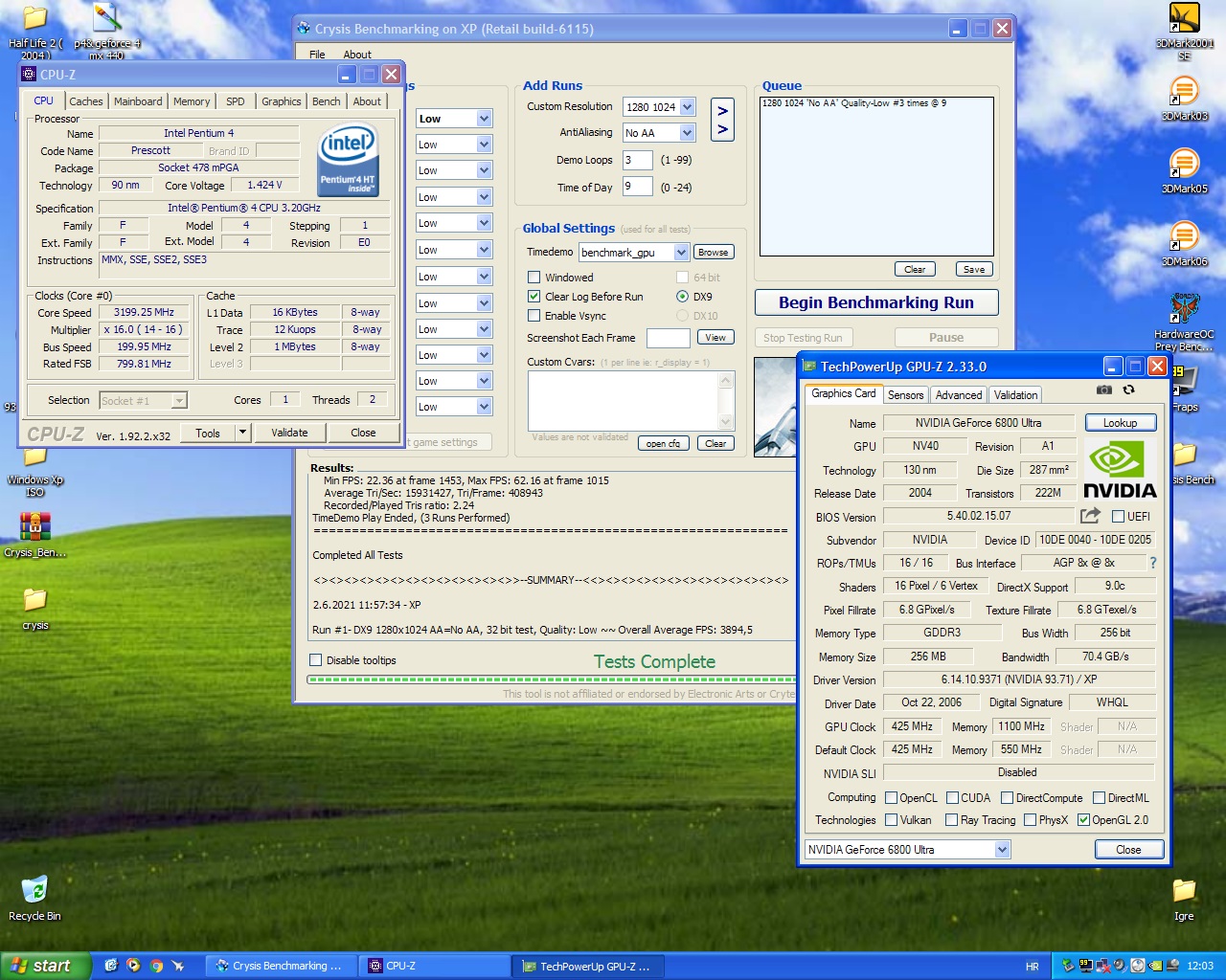 Složio Retro PC iz 2004 temelji se na ![]() Intel Pentium 4, 3.200Mhz, Prescott, 800 FSB, 1Mb L2 hladi ga Zalman CNPS7000B-AlCu Asrock P4I65G 2 GB DDR 400 KINGMAX Geforce 6800 Ultra AGP 256Mb Creative X-Fi Xtreme Gamer zvucna ( 2007 ) malo novije WD 1 TB LC Power 600W Trenutno bencham 3DMARK03, 05, DOOM3, CRYSIS