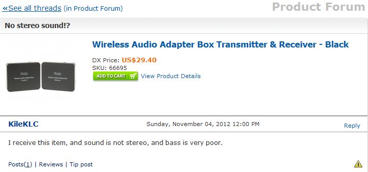 dx... uf... od mene neće više dobit ni lipe. znači, većinom dobri reviewovi. samo jedan od 2 zvjezdice. nakon što sam dobio item i vidio da nešto ne štima da reko vidim taj review od 2 zvjezdice. kad vidi čuda. klikneš na pogledaj svih 11 reviewova i dobiješ i samo 7 i nigdje toga od 2 zvjezdice. pogledam forum i vidim da nisam jedini, ima još jedan koji ima problem. bassa ni za lijeka, stereo zvuk je malo "više stereo" u desnoj slušalici ![]() i šta sad? slat item nazad? jel itko to već radio? neda mi se baš zezat s tim radi $29.99, radije sve rastavio, malo se igro s tim i tražio problem kad mi bude dosadno. ne znam zašto sam upće naručivao item kojem sku počinje sa 666. ![]() |