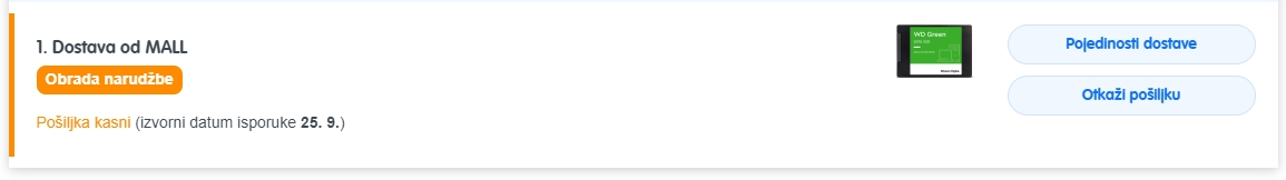 Ja sam narucio dva ssd-a 13.09. i platio karticom odmah, pa jos cekam da stigne do box-a. A datum dostave se mijenja od 18. Trenutno je "Dostava do 21. 9" ![]() A status narudzbe: Provjeravamo zalihu artikala i prosljeđujemo narudžbu skladištu na daljnju obradu - strpljen spašen ![]() |