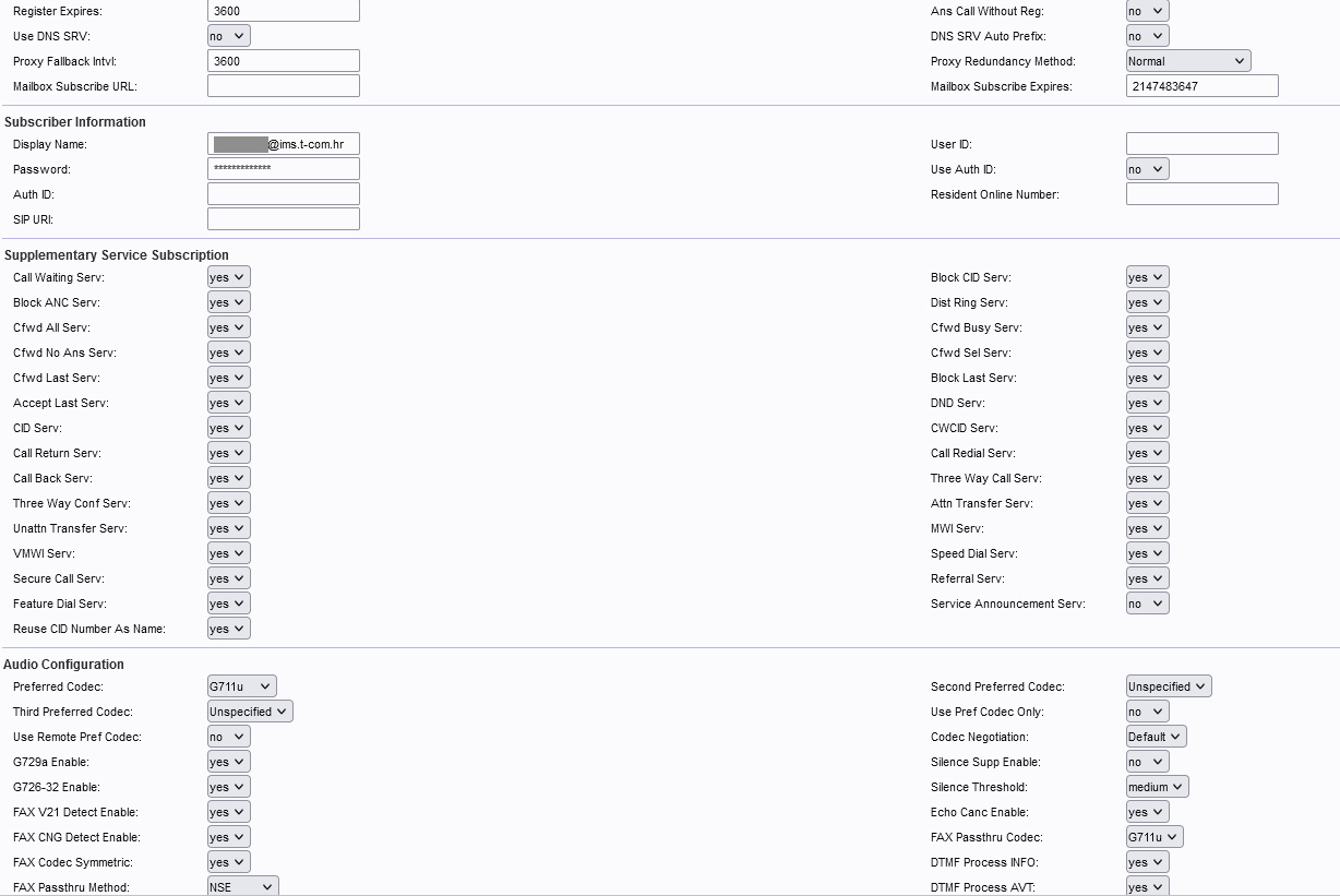 I druga stvar, nisi pokazao mrežnu konfiguraciju. Treba biti DHCP a sam uređaj mora biti spojen u neki tvoj router na kojem je taj port tagiran kao VLAN 101. Džabe SIP postavke ako ne može do IMSa.