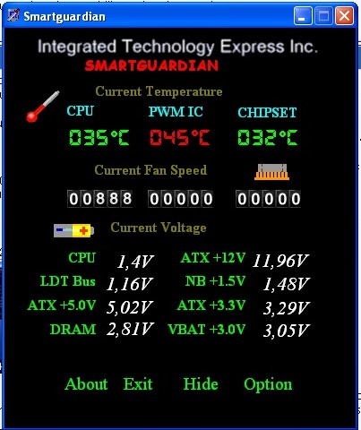 htio sam to rjesiti jer mi sutra treba komp da nesto snimim. no odustat cu od toga i odnijeti ga na servis. konfiguracija je: dfi nforce infinity ultra athlon 64 3200+ venice patrio 2×512 hard maxtor 200giga sata gecube 1900gt winfast 2000xp fortron blue storm 400w silverstorm kuciste dvd rw nec 3540 |