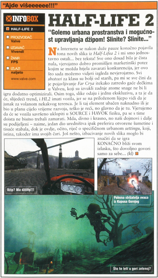Nakon malo duže stanke (nakupilo se svega, blagdani, frend iz Irske došo, a bome me i korona poklopila dvaput) stiže novi sken i to broj iz travnja 2004. godine. ![]() Za početak naslovnica, u prvom planu Far Cry, igra koja je nekako iz sjene došla i prije Dooma 3 i Half-Lifea 2 i realno, već u ovoj najavi vidi se da je riječ o vrhunskom FPS-u tadašnje nove generacije DirectX 9 igara. U ovom broju ima pregršt igara od Blood Ryne 2, Hitman 3 pa do UT2004, Splinter Cell 2, Conan. Ali zanimljive su mi najave igara Freedome Force vs Third Reich te Aura: Myth of Ages jer navedene igre nisam igrao. Opet imamo mini članak o igri Half-Life 2, praktički u skoro svakom broju se nešto spominje na temu HL2 pa tako i u ovome broju, eto koliko hype je bio oko ovo igre. ![]() Od hardwarea, vidi se da ozvučenja, zvučnici i surround sustavi uzimaju maha pa tu imamo surround test zvučnika za PC, ali i AV receivere i 5.1 sustave kompleta zvučnika. Tu je još i veliki test HDD od 100+ GB kapaciteta. Ovaj broj je isto odrađen u A3 formatu te kompresiran na razumnu veličinu. LINK: https://drive.google.com/file/d/1gm_...ew?usp=sharing P.S. sken broja 102 je gotov samo moram još obraditi rubove i kontrast pa će i to uskoro ![]() |