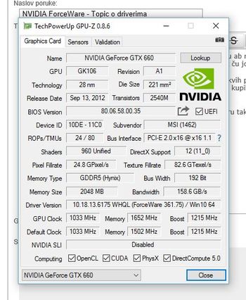 Ekipo, pardon na buđenju teme, ali zanima me ako je netko imao sličan problem: Frend nabavio MSI GTX660, spojio u komp, radi fantastično sve do restarta kompa. Kada restarta, kartica se ponaša kao da nema drivere instalirane. Igre ne rade na lowest lowa (iste igre koje su radile prije na 1080p i high), videi štekaju i sl. Clean install drivera i sve opet radi kako spada do sljedećeg restarta kada ide sve ispočetka. EDIT: Pokušavao i s latest i sa starijim driverima. Ista stvar. Formatirao je sve i radio sve na čisto i 0 bodova. Poslao ju je na garanciju, vratili mu i rekli da sve radi dobro. Stavio sam je u svoj komp i mogu potvrditi da i kod mene kartica radi evo već par dana kako spada. Ima li itko ideje u čemu bi mogao biti problem? Njegova konfa: Gigabyte H97m-HD3 Intel i3-4160 2x 4GB Corsair Vengeance 1600MHz XFX TS550W Neki Kingston SSD od 120GB (ne znam napamet ) |