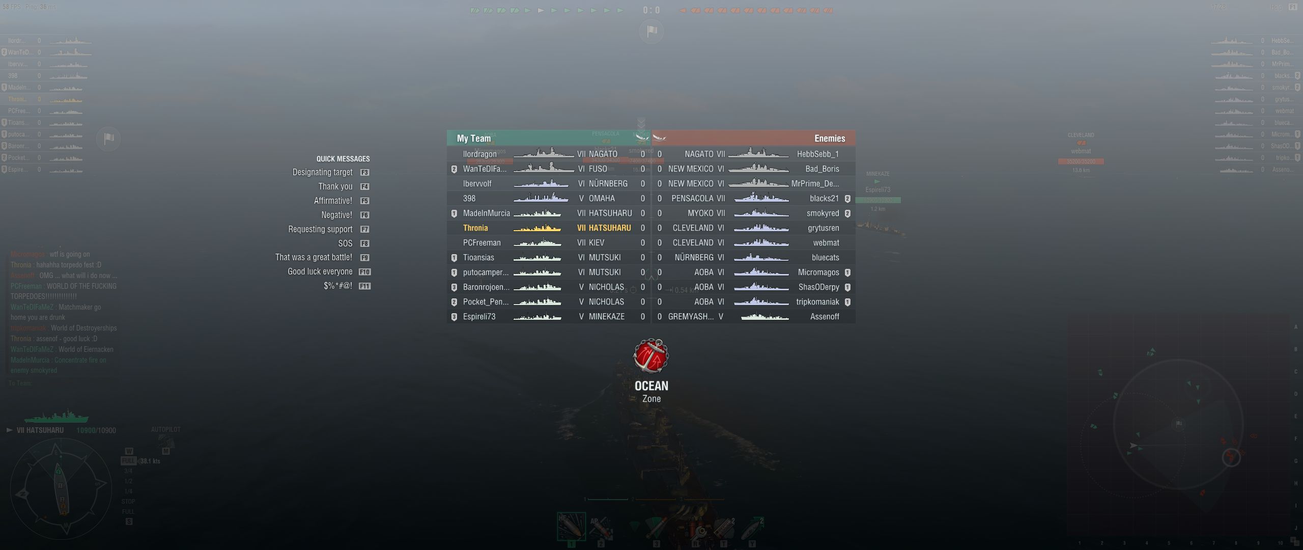 Evo jedna od mojih boljih partija, ako ne i najbolja sto se tice neizvjesnosti. Ostao sam protiv njih petorice, trojicu potopio i uspio uzimati flagove pa smo dobili na bodove. Prvo se izivcirao jer me moja furutaka skoro 2 puta potopila sa torpedima koje sam jedva izbjegao, i onda bio sretan sto su ga skinuli Dalje maknuo Nickolasa, pa ostao zadnji i onda je islo redom - colorado - warspite - colorado.Victory 1 - 2 - 3 - 4 - cleve idiot (chat) ![]() |