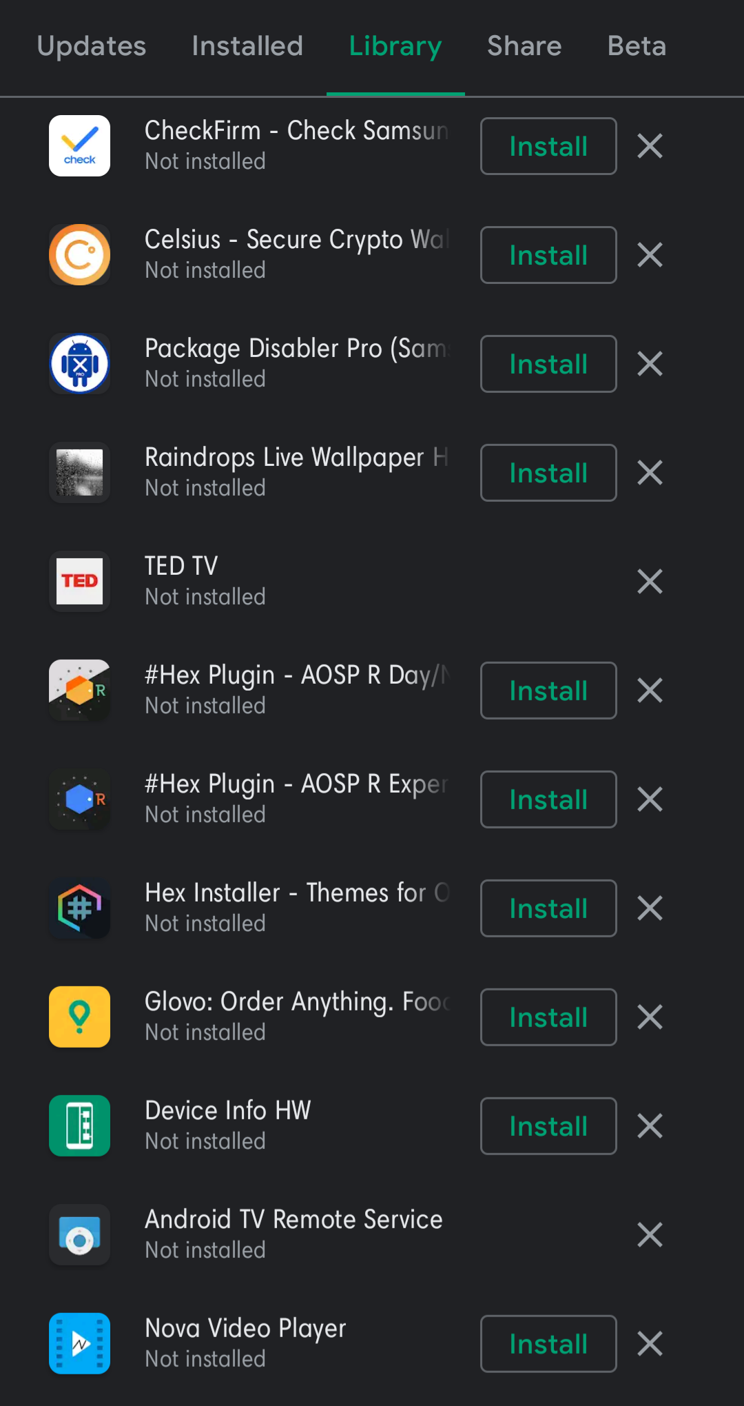 Zanimljivo. Mene ta lista prati uvijek i svugdje jos od 2010-te, cak i nakon factory reseta ili promjene x mobitela. Provjeri jos koji put, vjerojatno je Playstore nije povukao sa servera. Jos mi je zanimljivije sto nemas X pored svake stavke. Malo sam gledao i uopce ne mogu skuziti kako taj X ugasiti, a kamoli upaliti. Sjecam se da ga vec jako dugo imam jer svako par mjeseci pobrisem hrpu appova koje random isprobam i ostanu na listi, a ne zelim ih.