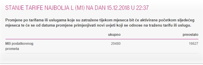 ![]() Ne vidi se 1gb sad na prvom ss-u zbog aktiviranih promo 50gb, ali mogu ti dat ss od sms-a kojim me obavještavaju da sam potrošio tih 1gb ako ne vjeruješ , jer se prvo troše promo gb onda redovni iz tarife.Tarifu plaćam tih 159kn, kao da imam 2 moba u magenti, a imam jedan ![]() I vidiš koliko plaćam račune od max3premiuma u zadnjem ss-u. Vrlo jednostavno ![]()