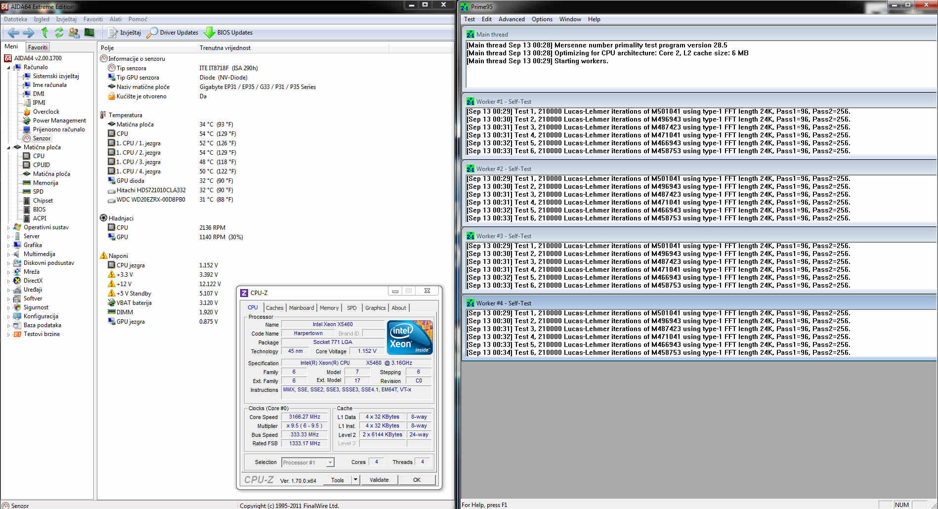 evo napokon win su gore, lagano prime i aida i cpuz , sve stock naravno.. Temperature u AIDI nisu vjerne , sve dok ne pokrenem stres test u primeu, onda skoce za nekih 15ak °C na nekih 50° sto mi je odokativno realno.. Hladnjak je topal, ali ni priblizno nije strasno kao npr onaj jež na NB koji je blago receno vruĆ ! ..ali to je tako bilo i na mojoj P35 i e8500 ![]() da mi rade sve 4 gige rama, bio bih miran, ovako nisam miran i dalje trazim ploču ![]() ![]() ![]()