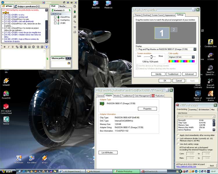 Al mislim da je bios optimiziran za r350 chipove, makar dok ga otvorim, pise da je namjenjen za r360. Ko ce ga znat! Sa ovim biosom koliko sam skuzio neradi hydravision, i nema nikakvih opcija unutar display properties-a!