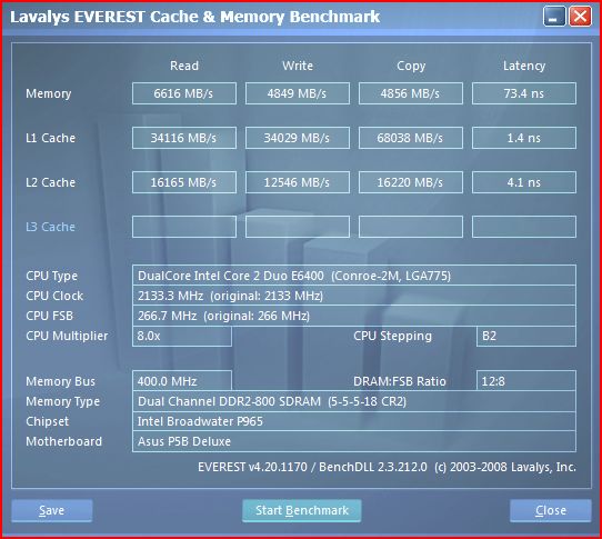 Read: 7392MB/s Write: 5042MB/s Copy: 5808MB/s Latency: 73.1ns |