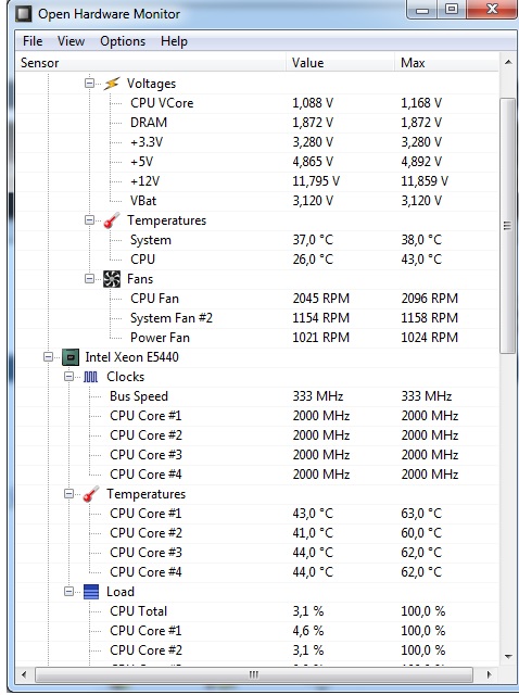 vjerojatno ti je tjmax stavljen na 100, pogledaj po netu koliki je kod tebe. Imao sam isti "problem", te kad sam stavio tjmax na 75 stupnjeva, pokazivalo je sve kako spada. |