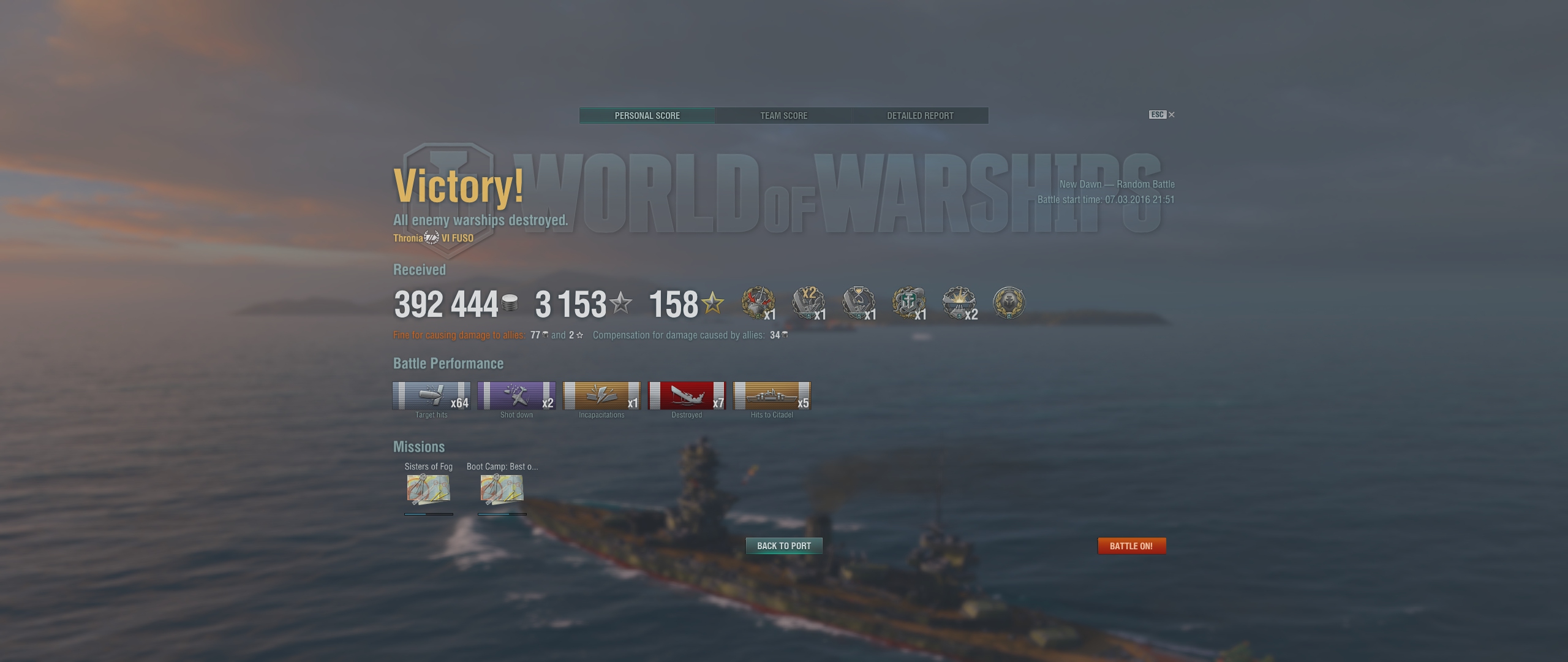 Ako je meni dosadna, nemora značiti da je svima dosadna. A referirao sam se na BladeRyev komentar da je izumo dosadan, a NC, Izumo, Iowa i Yamato se igraju jako slično. Najdraži stil igre mi je onaj ruskih DDova. Uzeo sam taškenta, koji je (nakon gotovo svih linija odigranih do T8) jedan od lošijih brodova u svom tieru, zbog svoje veličine i radijusa okretanja. Događa mi se da BBovi napamet ispale salvu u dim i pogode me, presmiješno. Još nisam popio torpedo u dimu, ali doći će i to kad tad. Uz sve navedeno, taškent mi je jako zabavan, BBovi su mi ATM najdosadnija klasa u igri. Čak mi je i ranger zabavniji od BBova. |