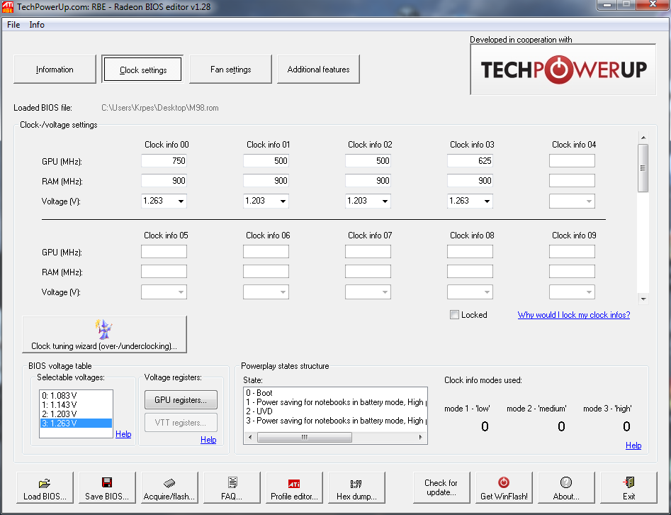 RBE /Radeon BIOS EDITOR ATI WIN FLASH svaki put prije nego počeneš što flešati, dobro provjeri da ne staviš krive vrijednosti skini svoj BIOS pomoću GPUZ -a l pa onda editiraj, save, open ati wflash, save as img, "program" pokreće flešanje malo čudno napisano kao da nisu mogli napisati jednostavno FLASH možeš i vidjeti postavke drugih GPU BIOS sličnih kartica ovdje , ali nemoj njih upucavati , bolje je da prepraviš svoj posebno vidi FAN postavke u čemu je štos nemože se iz slike vidjeti dal je hladnjak dobro postavljen, treba mehanički odšrafiti ona 4 šarafa, pa vidjeti i pažljivo montirati dogodi se da baza ne sjedne dobro jer se stežu šrafi kao da je stolica, pa se nakosi i dodiruje samo čošak jezgre, dovoljno da hladi idle, ali zato load bude u komi od temperatura Zadnje izmijenjeno od: Brzi Picek. 02.12.2013. u 07:12. |