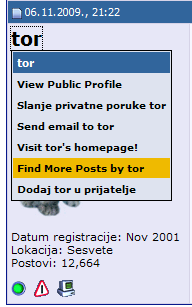 Usput kad smo kod postova i praćenje svojih tema, jučer oko 6:50 ujutro sam dobio barem jedno 30-tak mailova o svim temama koje sam pratio/pratim, i to su bile neke teme koje nisu aktivne preko par tjedana, ali sam sve to već odavno pročitao... Inače Horza bi mogel u ovaj padajući "Brzi izbornik" dodati link na "Moji Postovi", mislim da tu stvarno nema neke filozofije... ![]() |