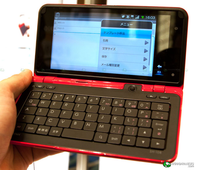 ak nije neki update izasao il ga neki japanac haknuo na 2.2 ili 2.3specs: Dostupan crveno/crno 5' touchscreen sa 960×480 resolution Dual camera 5.27Mpix i prednja only 0.43Mpix full QWERTY keyboard HSDPA, IRDA ?? & WiFi BG, Aquos Blu-Ray transport -> omogućaca ripanje Blu-Ray movies direktno preko 1Seg TV Tuner (opet Japan only) ,Bluetooth, FM Transmitter, 4GB of internal memory (3GB za korisnika) Android 1.6.