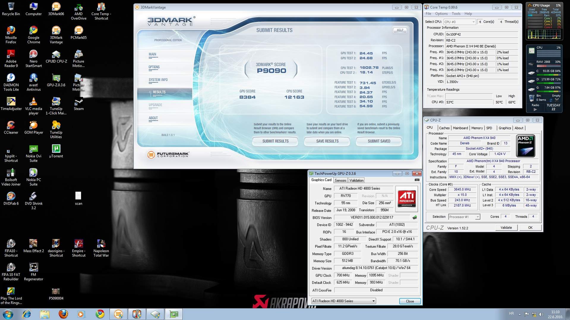 http://hwbot.org/community/submissio...50_21719_marks http://hwbot.org/community/submissio...50_21859_marks 5850 1118/1250 , i7950 4.67ghz 21859 5850 1075/1215 , i7950 5.02ghz 21719 Ni 350mhz proca ne može nadoknadit 40mhz grafe u Vantegeu. |