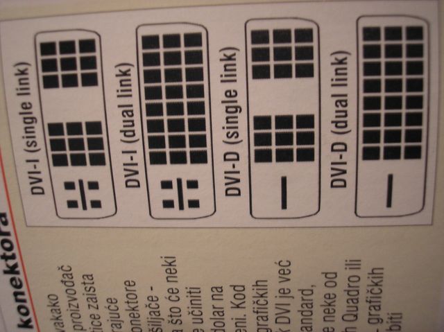 gle,postoje ti dvi-i(single link),dvi-i(dual link),dvi-d(single link),dvi-d(dual link).štos je što ti dual link ima dodatne odašiljače pa fura i po drugom kanalu.sad ovisi kakav imaš al možda je u tom caka.vidi sliku |