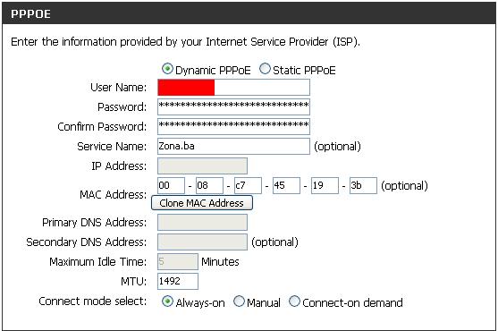 Pozdrav. Posjedujem navedeni access point i prije par dana sam nabavio router d-link dir 100, jer mi je potreban zbog povezivanja na internet satelitskog resivera, e sada, tu su mi nastupili problemi. Nakon dosta muke lokalnu mrezu sam uspio nastimati, ali nikako ne mogu na routeru da podesim PPPoE konekciju. Spojeno je ovako AP - Router (wan port) - iz njega sa 2 lan prkljucka, jedan u komp, drugi u resiver. U lokalu ih vidim sve, postavke su automatske sa ukljucenim dhcp-om i na kartici mreznoj od kompa i na resiveru. Na rsiveru dhcp mijenja ip, znaci taj dio je ok. E sada, ne mogu nikako podesiti PPPoE konekciju na routeru. Jedini nacin da mogu da se konektujem na net bi bio, sklanjanje routera i pokretanje konekcije sa kompa. Kada probam preko routera da se konektujem, u statusu stoji disconnected, i nakon klika na connect ne promijeni se nista. Podesio sam username i password, pokusao i sa kloniranjem mac adrese mrezne kartice u router i nista. Evo okacio sam i slike. Tu je slika sa podesavanjima konekcije na ap-u kada je ona pokrenuta sa pc-a, podesavanja mrezne kartice, podesavanja PPPoE konekcije na routeru koja sam postavio i status na routeru koji je disconnected i koji ne mogu da promijenim. Svaka pomoc ce mi dobro doci, oostao sam bez ideja. Hvala unaprijed. |