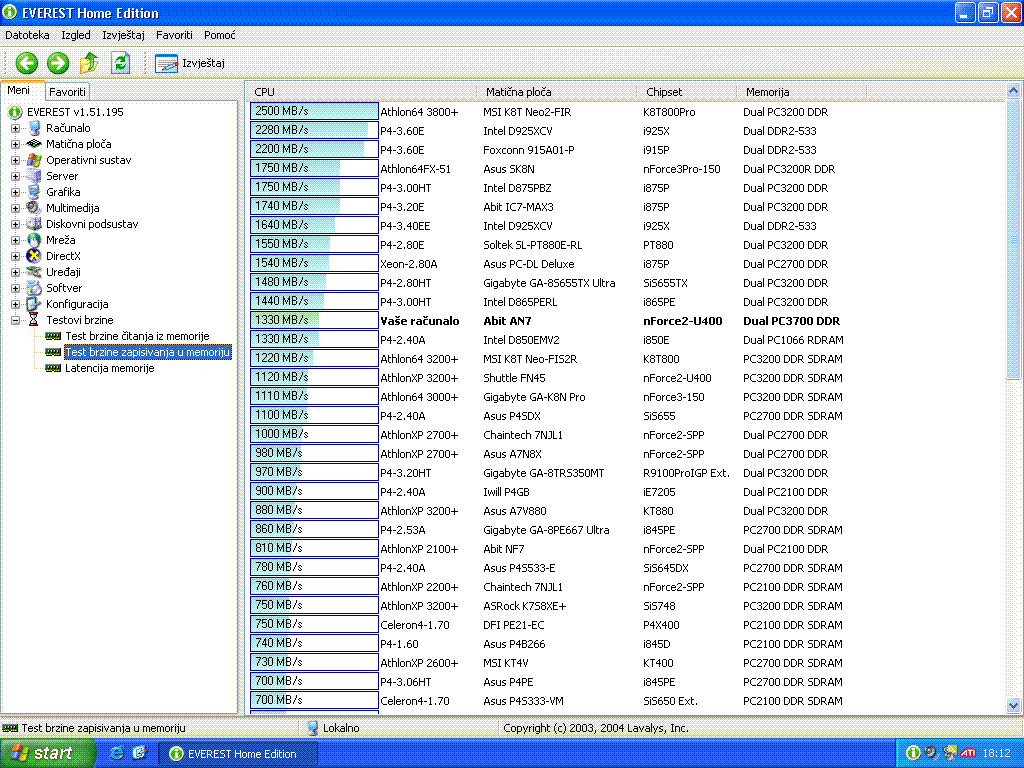 freakin nice brate.... al ipak je to A64 i 1gb, premda u biti kolko je razlika npr u everestu u performansama izmedu 512 i 1gb? |