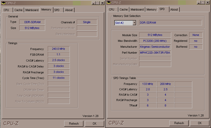 Barton 2500+ @ 1.425 V - 1.84 GHz/333 MHz, mem. 2.0-2-2-5 Barton 2500+ @ 1.675 V - 2.20 GHz/400 MHz, mem. 2.0-3-3-6 Barton 2500+ @ 1.800 V - 2.40 GHz/433 MHz, mem. 2.5-3-3-6 Dalje sam samo isprobavao do kolko ide do ulaska u Win bez testiranja stabilnosti i nije išo iznad 2.53 MHz pri naponu 2.0 V.