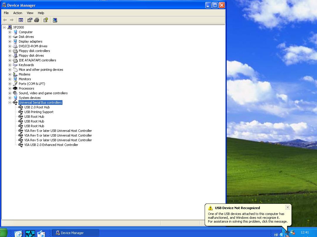 i vrlo lako ti moze biti da nemas sp1 i da usb ti ne radi dobro..s time da je meni javljao da je usb kontroler nepoznat ali mi je usb wireless mis radio dok skener i ostalo ne zeli ni prismrditi blizu
