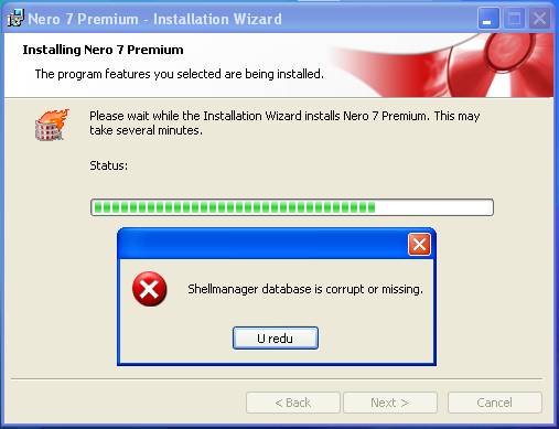 ![]() Bok! Imam jedan problem s nerom 7. 0. 1. 2. demo verzija. Naime kad ga idem instalirati početak protiče dobro a onda se u jednom dijelu pokaže eror i piše "shellmanager database is corrupt or missing". A kad kliknem next piše mi "The wizard was interrupted before nero 7 demo could compleatly installed. Your system has not been modified. To compleate instalation at another time, please run setup again" Provao sam sto puta i neradi pa molim da mi pomognete ako znate u čemu je problem. |