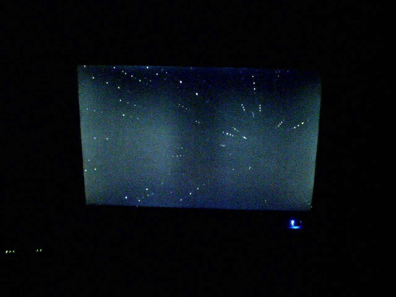Takva je slika kada je upaljen screen saver i to kada je na custom boja kada je na dynamic onda je nešto bolja ne previše, a kada gledam filmove u gonjem djelu kao što je na slici svjetla linija Samo da napomenem da je ovo slikano mobitelom tako da ima tu nekog odmaka u ovakvoj svjetlini ali ova crta koja prolazi po sredini ekrana je tu Zadnje izmijenjeno od: sharkri. 13.04.2007. u 22:36. |