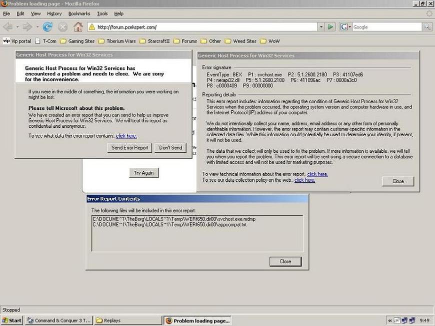 http://www.castlecops.com/t164516-Ne...lp_needed.html dosta ima podataka ovdje ! probao sam i ta 2 win update + disable sam 3 porta koji izgleda stvaraju crash !... za sad nema errora ! domy update > WindowsXP-KB894391-x86-ENU i WindowsXP-KB921883-x86-ENU + wwdc port blocker izgleda rijesavaju problem !... Olymp znam ali da nisam nazad ukljucion taj error report nebi ni znao scim tocno imam posla !-- |